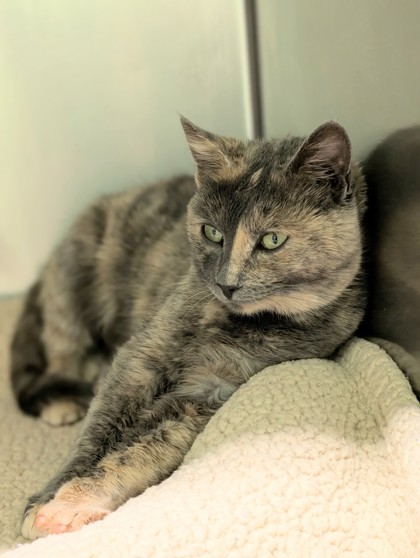 Marge is a beautiful torbie lady with a calm, nurturing presence. At 2 years old, she's confident, affectionate, and enjoys being part of the household routine. Marge loves attention, cozy spots, and being close to her people. She's the kind of cat who brings warmth and comfort wherever she goes.