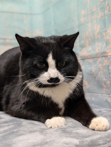 Mustache is a handsome boy with a quiet nature and a heart full of sweetness. He can be a bit timid at first, especially in new environments, but beneath his shy exterior is a truly loving cat just waiting to feel safe and secure.