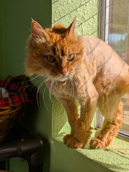Meet Cremsicle, a sweet senior lady with a gentle soul. She came in as a stray covered in mats, but it was clear right away that she has known the comfort of a home before. Cremsicle is affectionate, calm, and enjoys quiet companionship. She's looking for a peaceful place where she can relax, be pampered, and enjoy her golden years surrounded by love.